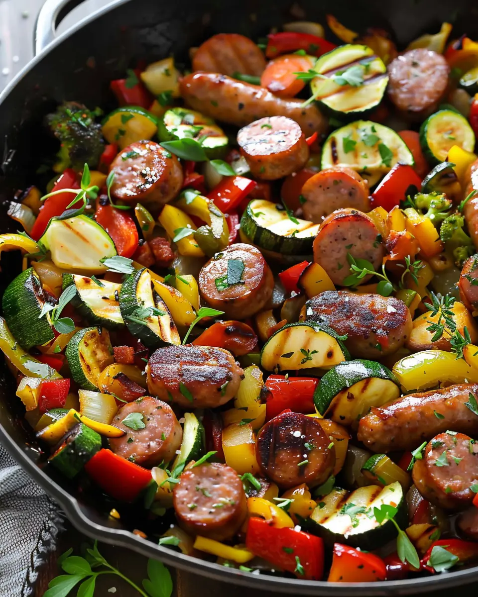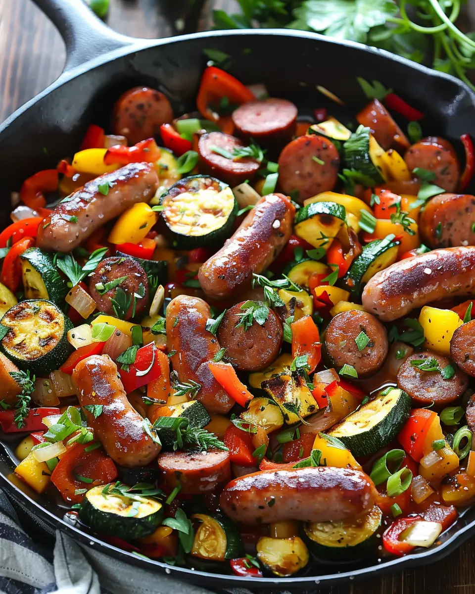 A delicious and simple skillet meal featuring sausage and fresh vegetables for a comforting family dinner.