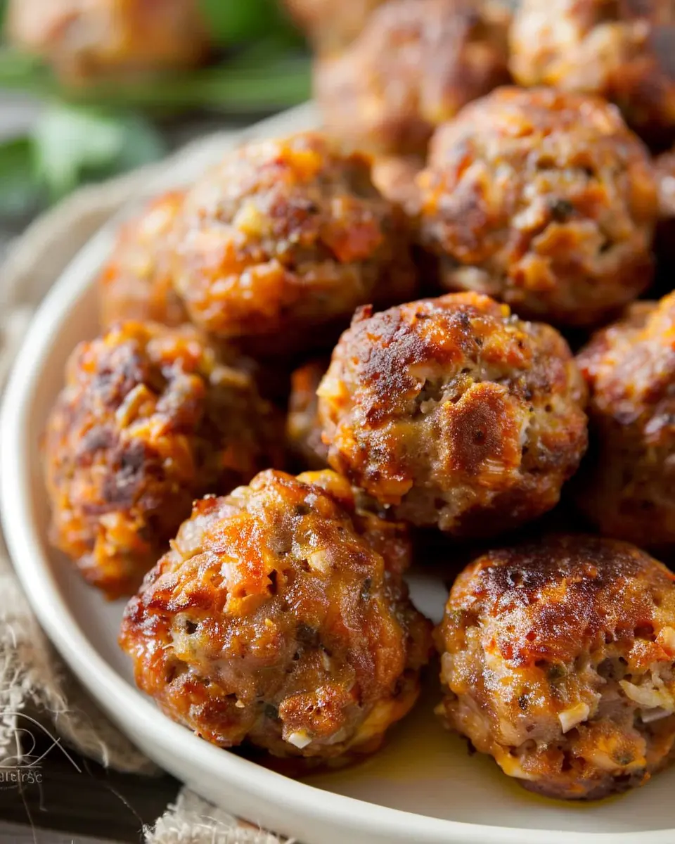 Bake with Care: For a crispy exterior, preheat your oven adequately and space out the sausage balls to ensure even baking.