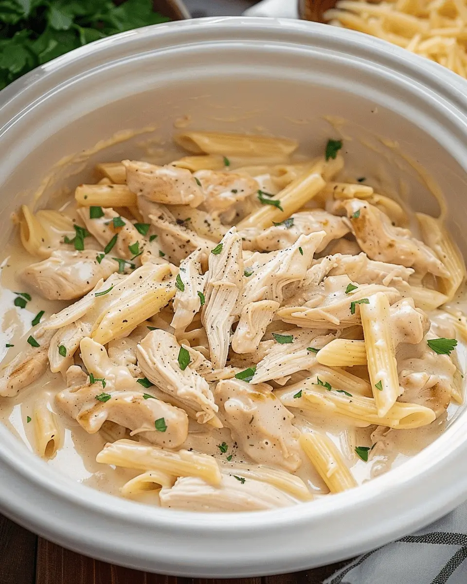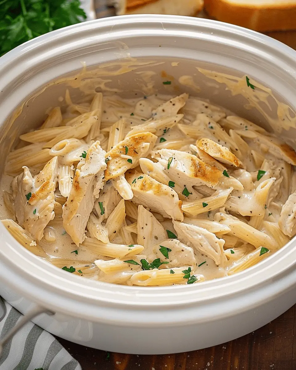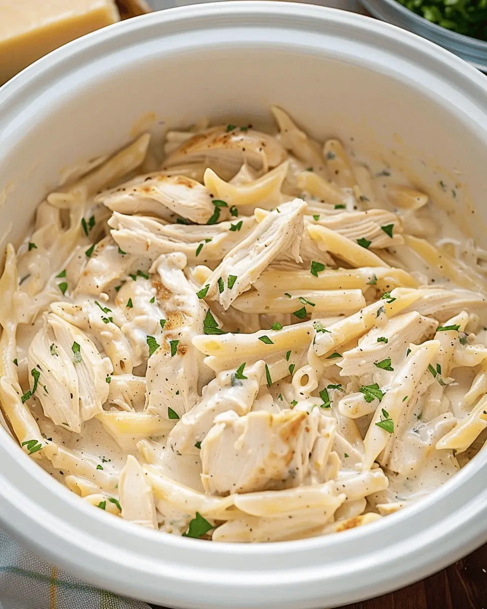A creamy and delicious Chicken Alfredo made effortlessly in your slow cooker.