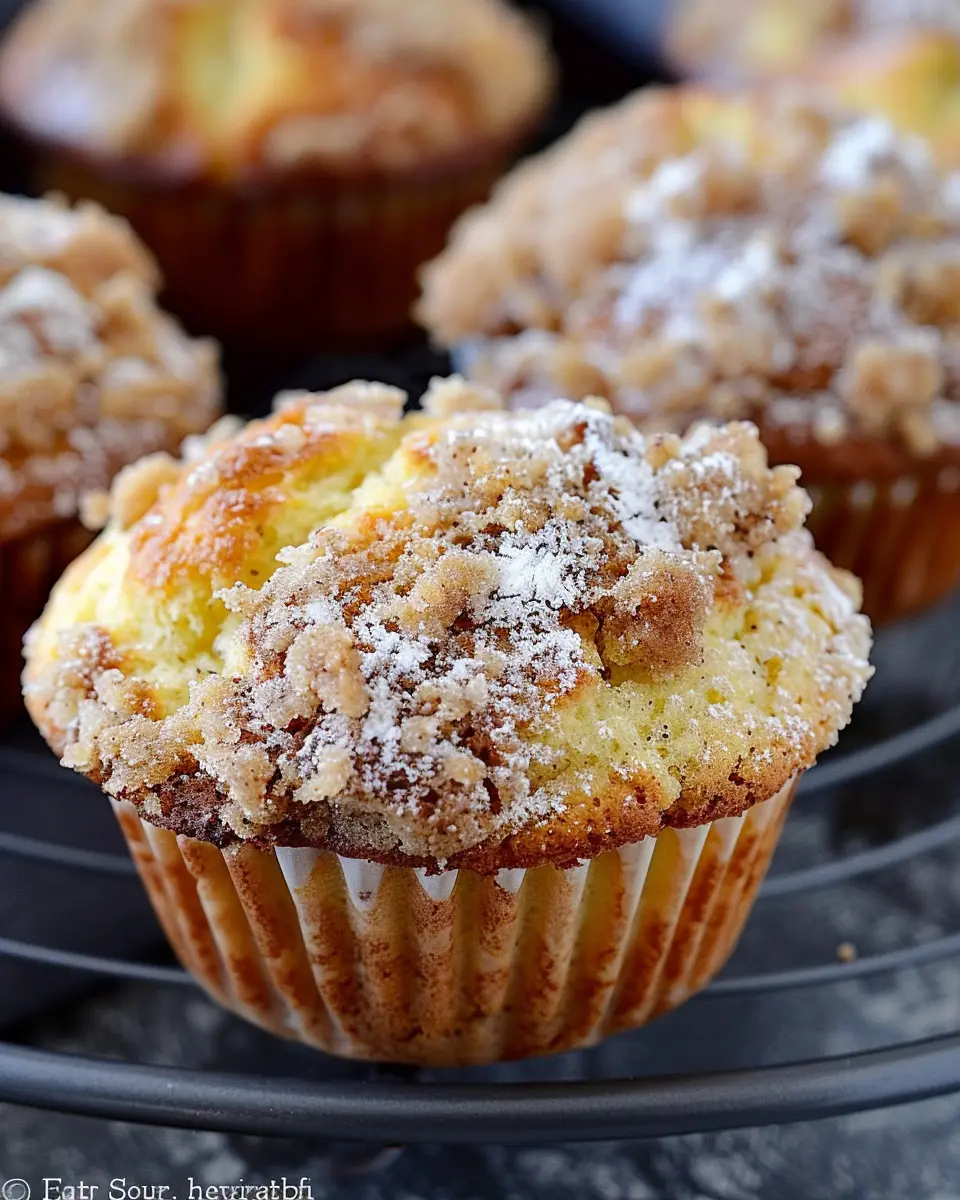 Delight in the rich and tender texture of these Sour Cream Coffee Cake Muffins, the perfect blend of flavors and comfort.