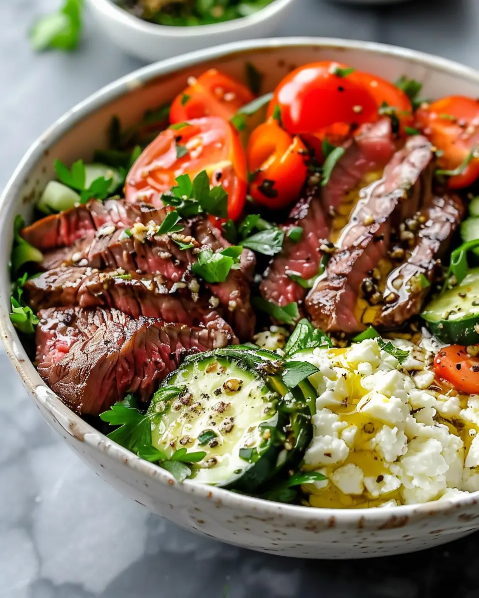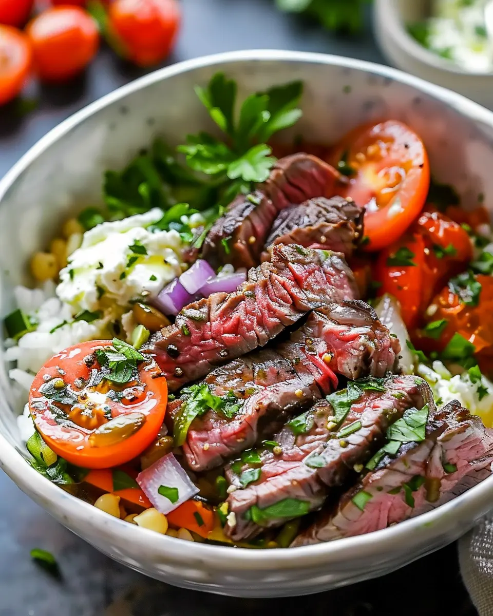PrintSteak Bowl Recipe: Indulge in a Mediterranean Diet Delight