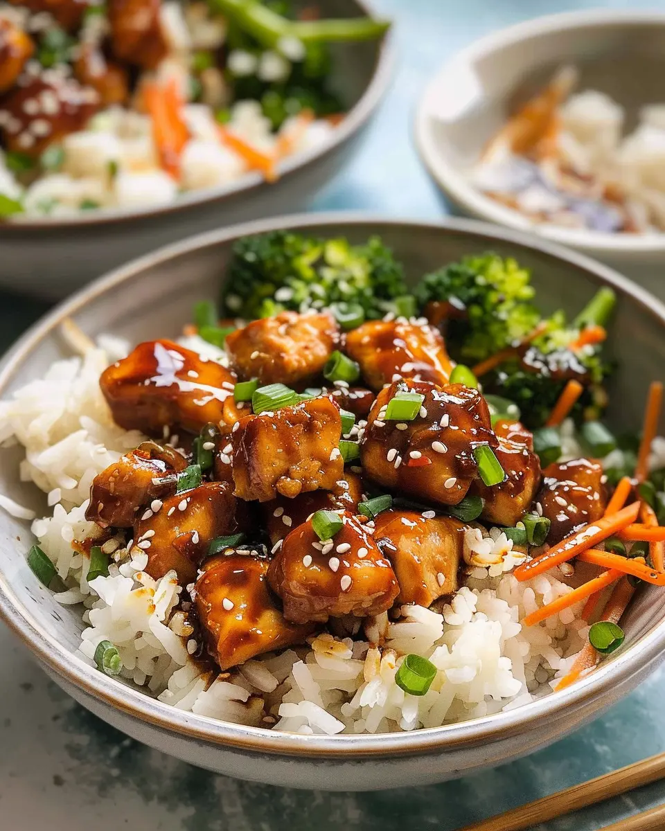 Who says sticky chicken rice bowls can’t be plant-based? Swap out the chicken for your favorite protein-rich ingredients like tofu or tempeh, both of which absorb flavors beautifully. You can marinate the tofu in a mix of soy sauce, maple syrup, and a hint of ginger for that signature stickiness. Top your bowl with steamed broccoli, snap peas, or an assortment of bell peppers to create a colorful and nutritious meal. For added crunch and flavor, sprinkle on some chopped peanuts or sesame seeds. If you’re looking for a delightful recipe, check out this guide on tofu preparation.
