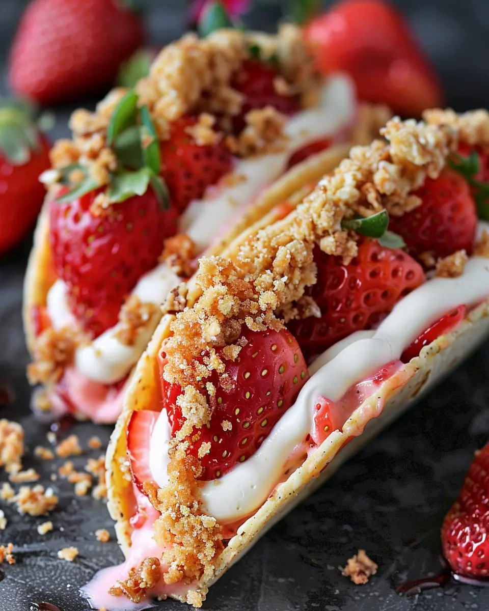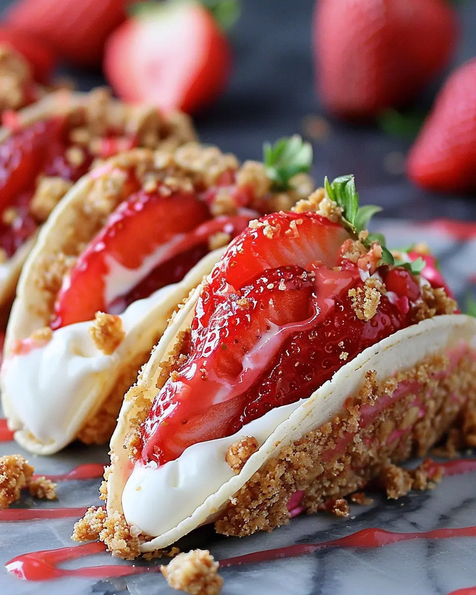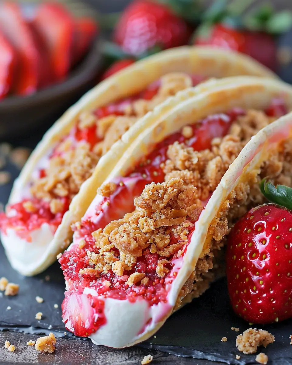 So, what exactly goes into these scrumptious tacos? The base is typically a sweet tortilla, often resembling a cookie or cake texture. Inside, you’ll find a luscious cheesecake filling made with cream cheese, whipped cream, and sugar—simple yet incredibly satisfying. The pièce de résistance? A topping of crushed strawberry crumble, adding a satisfying crunch and a burst of fruity flavor. It’s a dessert that invites creativity, so you can experiment with various toppings, fillings, and even presentations!