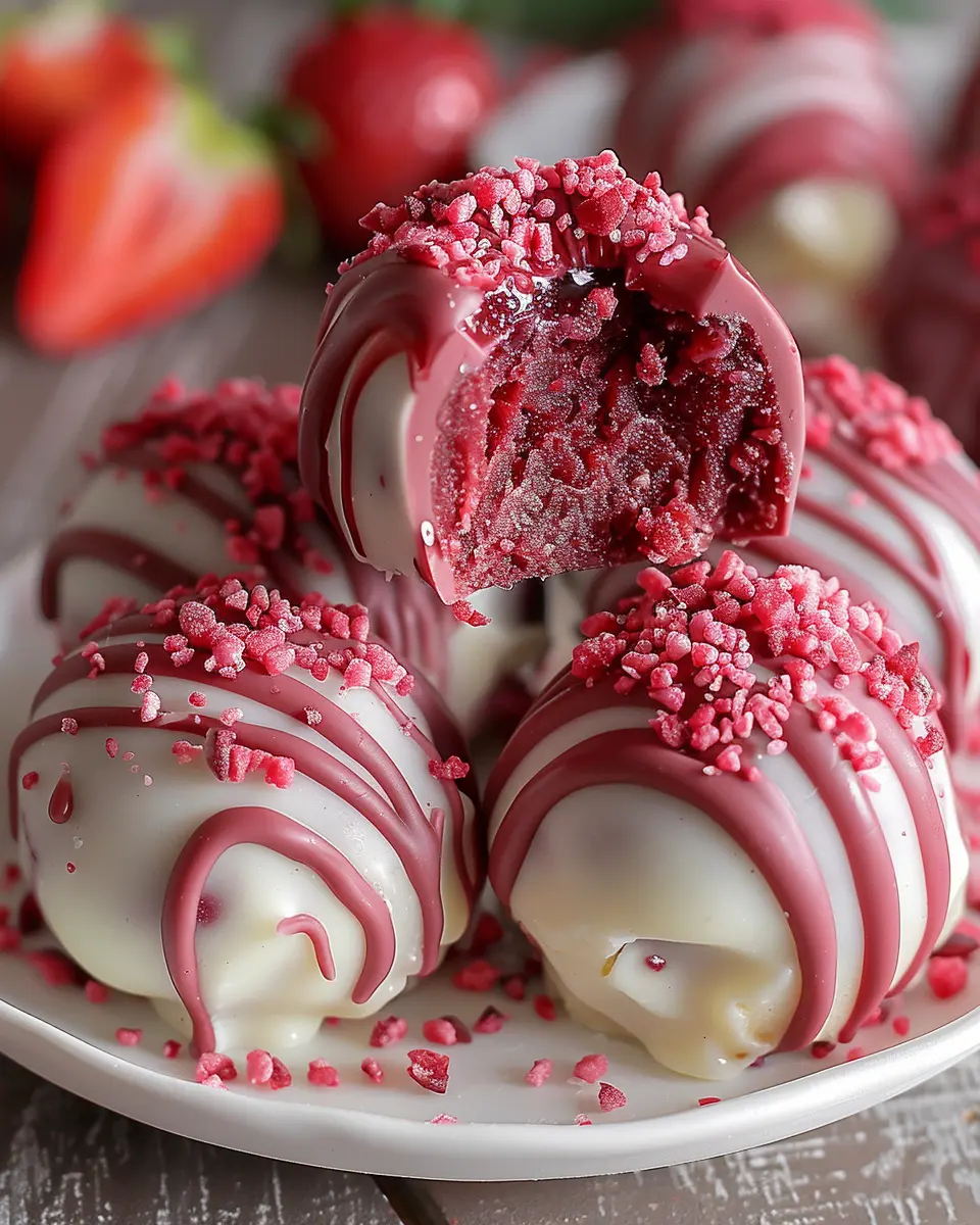 PrintStrawberry Velvet Cheesecake Truffles Recipe: Indulgent and Easy Treat