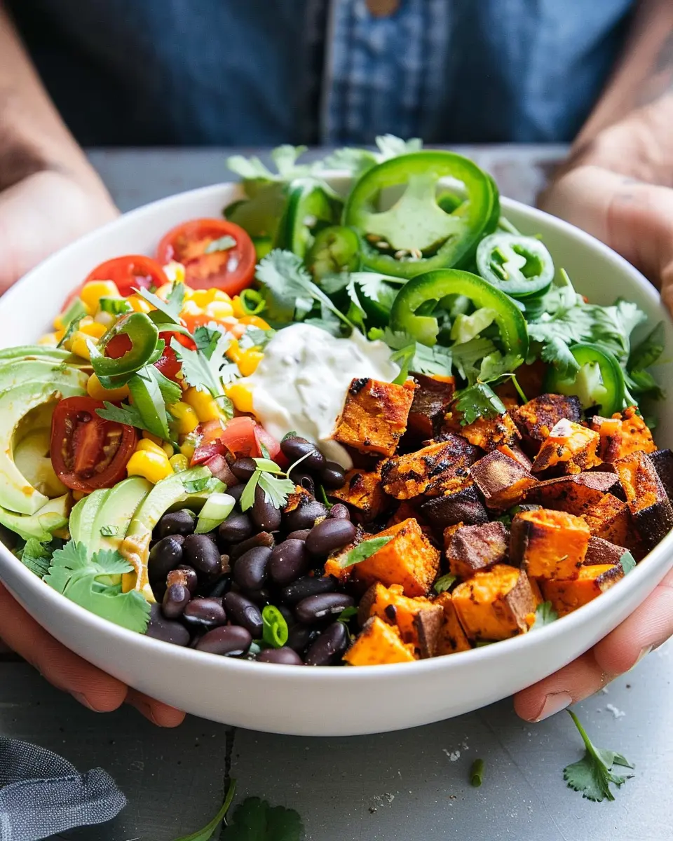 If you’re looking for a veggie-packed twist on the classic sweet potato taco bowl, this variation is perfect. Start by roasting your sweet potatoes with a dash of cumin and smoked paprika for added depth. Then, load up on fresh vegetables like black beans, cherry tomatoes, corn, and avocado. Toss in some cilantro and a squeeze of lime juice for a refreshing burst of flavor. This bowl is not just vibrant—it’s a nutritious powerhouse. Discover more about the nutritional benefits of sweet potatoes here.